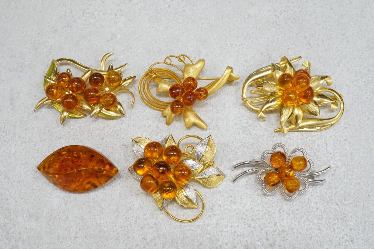 - B551 天然琥珀 ブローチ ヴィンテージ アクセサリー 大量 セット まとめて おまとめ まとめ売り アンバー コハク SILVER含む
