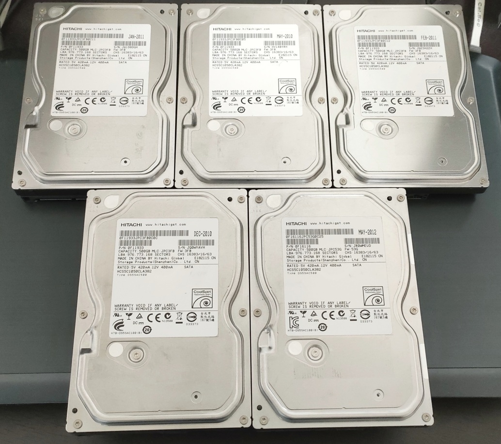- ハードディスク Hitachi HCS5C1050CLA382 500GB × 5個 動作品