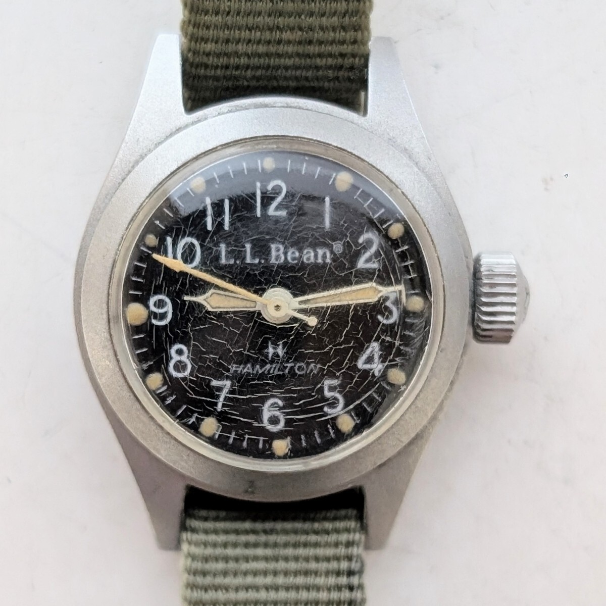 - L.L.Bean HAMILTON 870980 エルエルビーン ハミルトン ダブルネーム ミリタリーウォッチ 手巻き機械式 黒文字盤 レディース腕時計 稼働品