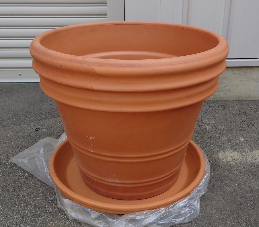 - 引取限定■120.植木鉢■赤茶 DEROMA/デローマ/MADE IN ITALY/50/受け皿付き 底穴有り イタリア製 テラコッタ 素焼き(0726YO-3)