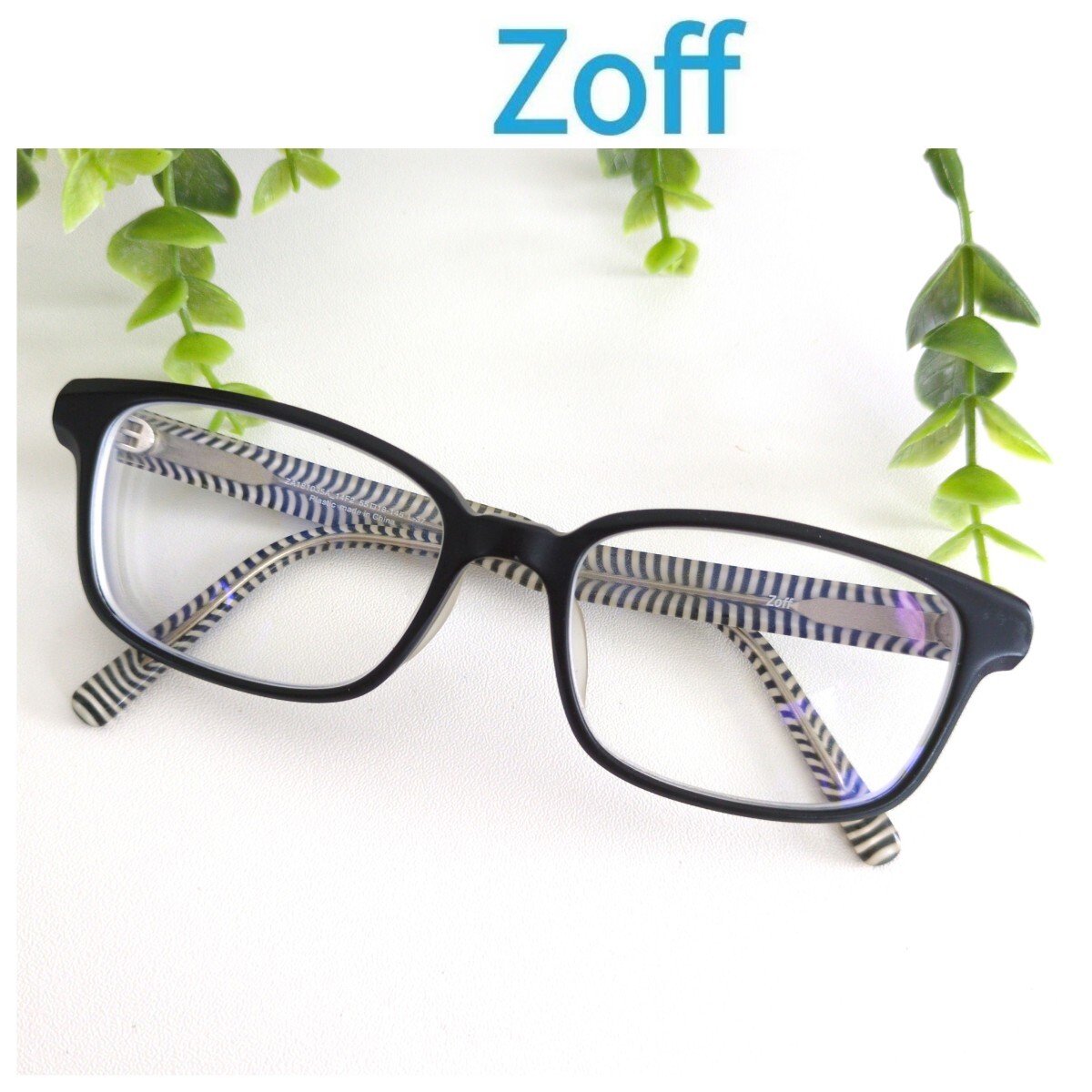 - Zoff ゾフ 眼鏡 メガネ ウェリントン スクエア ブラック マット 艶消し ユニセックス 黒縁 黒 ストライプ ビジネス オシャレ ボーダー