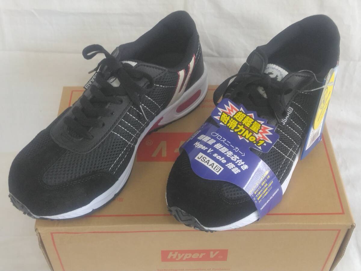 - 安全スニーカー ハイパーV-2000 先芯入り ブラック 23.0センチ JSAA規格 B規格 3E ワイド 黒 プロテクティブスニーカー 日進ゴム製