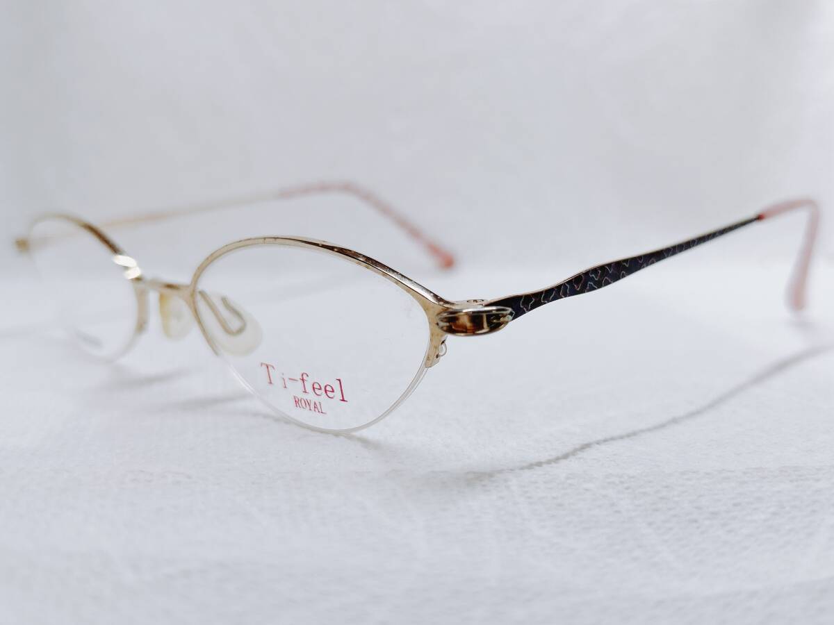 - C-6 新品 メガネフレーム Ti-feel 日本製 国産 ハーフ オーバル 47□18 138 11g チタン 軽量 シンプル オシャレ 眼鏡 女性 未使用 ブランド