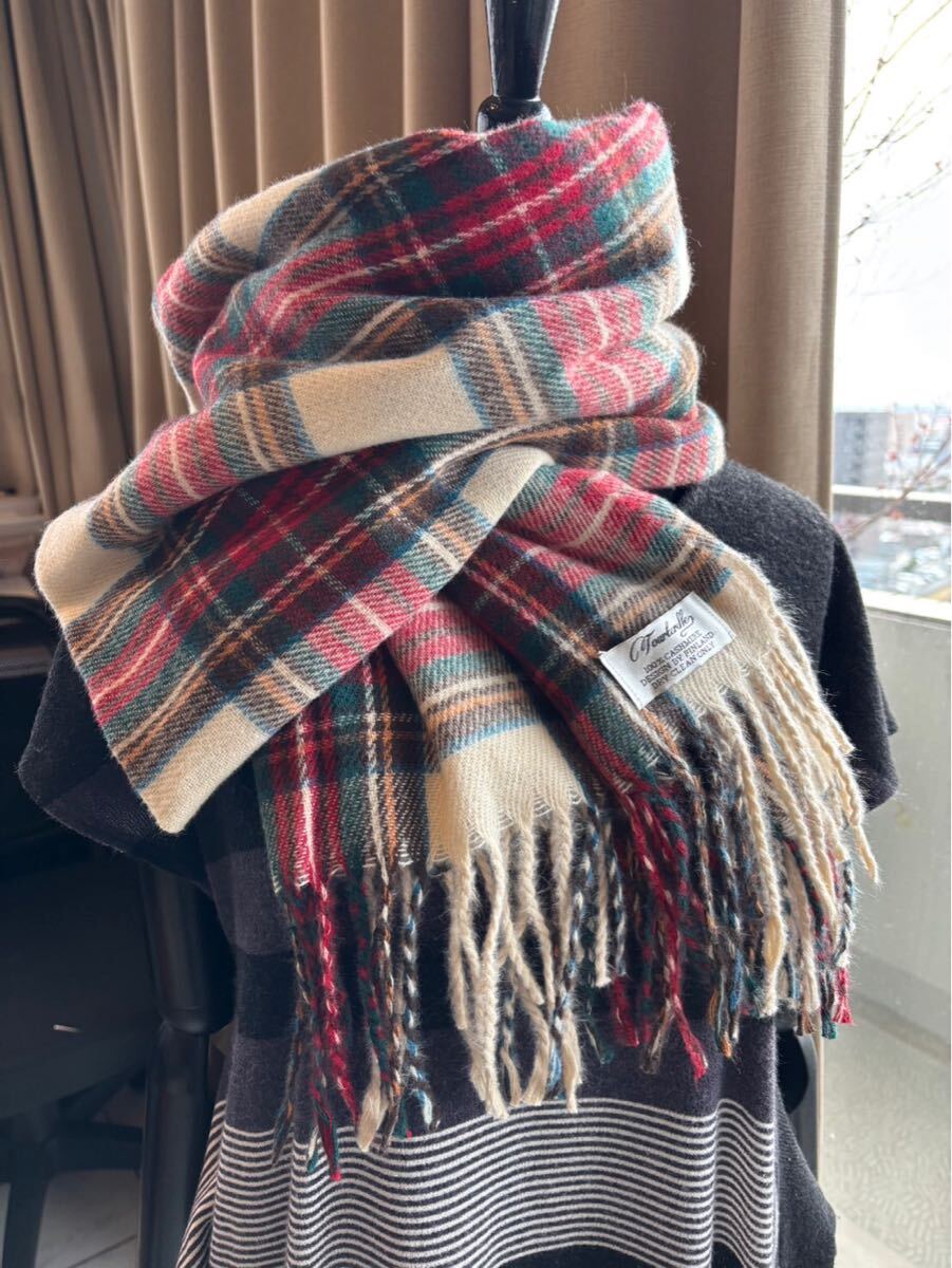 - ◆カシミア100%英国”ストール”新作’25 Madorasuアイボリー赤緑〇*:..azu00men