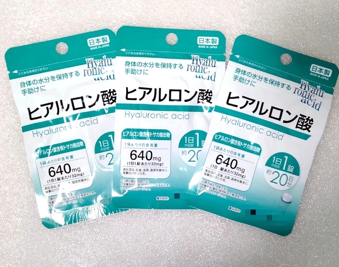 - ヒアルロン酸【合計60日分3袋】1日1錠 身体の水分を保持する手助けに 栄養機能食品 日本製 サプリメント