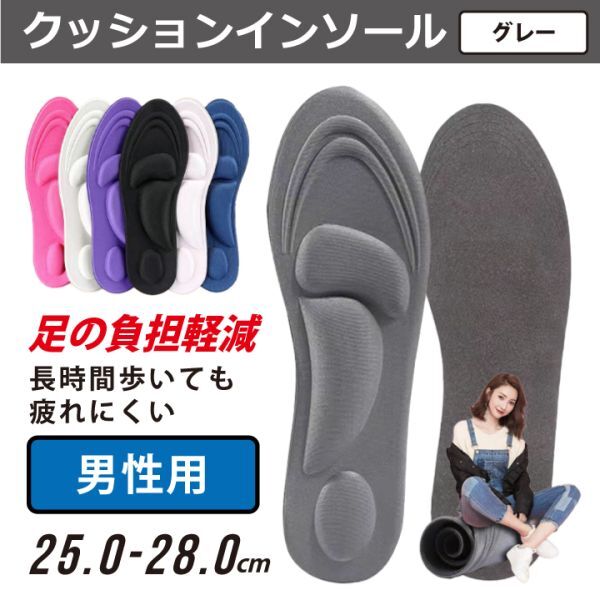 - クッション インソール グレー 男性用 低反発 中敷き スニーカー 革靴