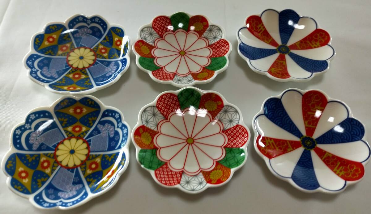 - 潛龜【美品】豆皿 3色6枚セット 小皿 醤油皿 銘々皿 食器 和風 レトロ 日本 陶器 焼き物 皿 彩り こどもの日 ひな祭り 節句 縁起物 行事 ①