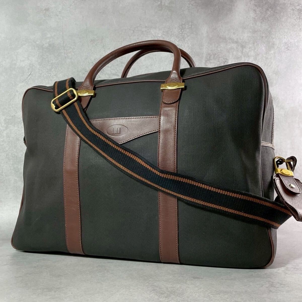 > 美品 A4 dunhill ダンヒル ボストンバッグ トラベルバッグ ブラウン レザー 本革 PVC 2way ビジネス 大容量 メンズ 旅行鞄 バイカラー