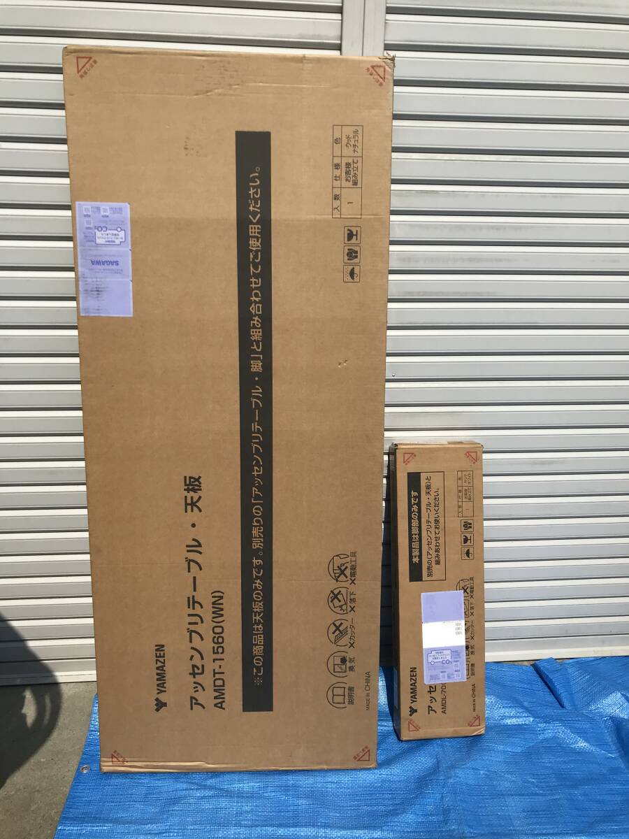 > 3469【未開封】YAMAZEN ヤマゼン アッセンブリテーブル天板・脚セット(AMDT-1560(WN)/AMDL-70(SWH) 組み合わせデスク 机 家具 他