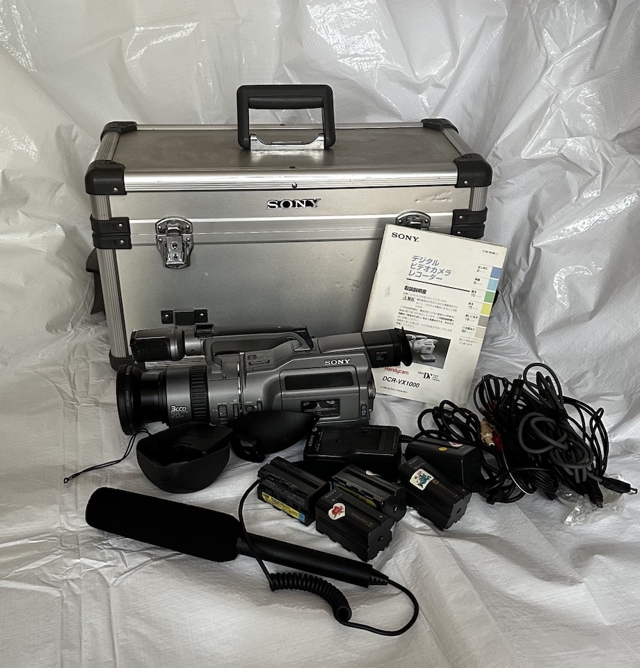 > 【動作品】 SONY DCR-VX1000 フルセット 純正アルミケース/取説/ガンマイク/バッテリー3本/充電器 豪華アクセサリー 3CCD ビデオカメラ