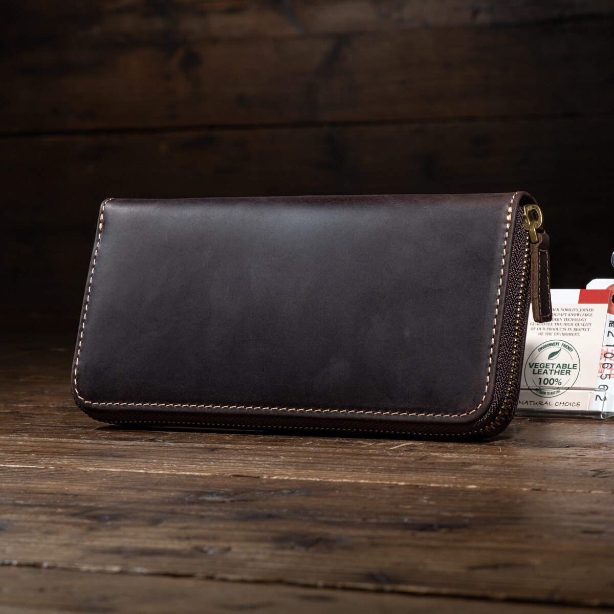 > オイルヌバック【牛革】イタリアンレザー メンズ 本革 長財布 ラウンドファスナー 新品 未使用 送料無料 1円 茶 ブラウン 田中革具