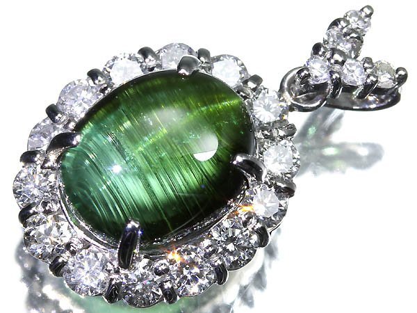 - RV18175T【1円~】新品【RK宝石】極上トルマリンキャッツアイ 大粒4.55ct 極上ダイヤモンド 0.96ct Pt900 高級ペンダントヘッド ネックレス