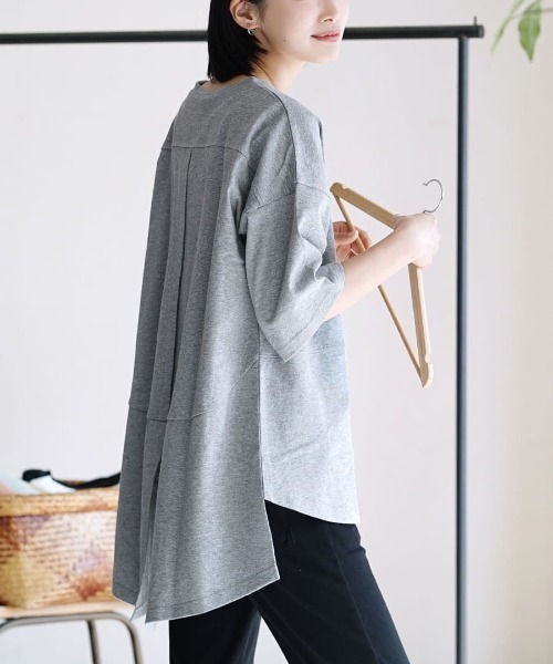 - 1209 新品 汗しみない Tシャツ[バックスリット] グレー