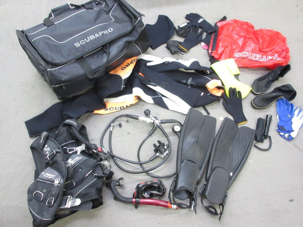 > T2013-N41-4141 スキューバダイビング用品セット SBUBAPRO A700 ベスト スーツ XLサイズ apollo bio-fin フィン など ジャンク 現状品1