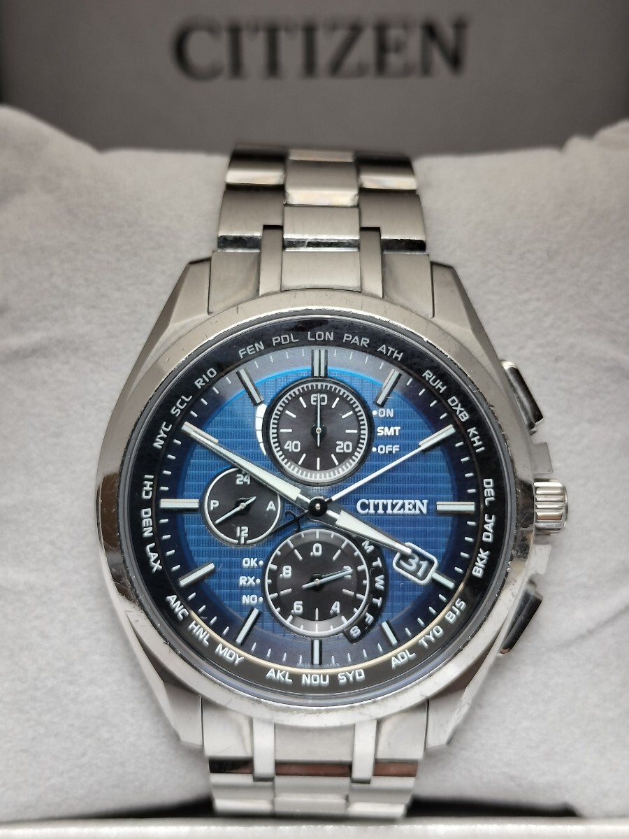 - 1円スタート 正常稼働 人気モデル シチズン アテッサ 電波ソーラー 軽量チタン クロノグラフ ワールドタイム H804-T018696