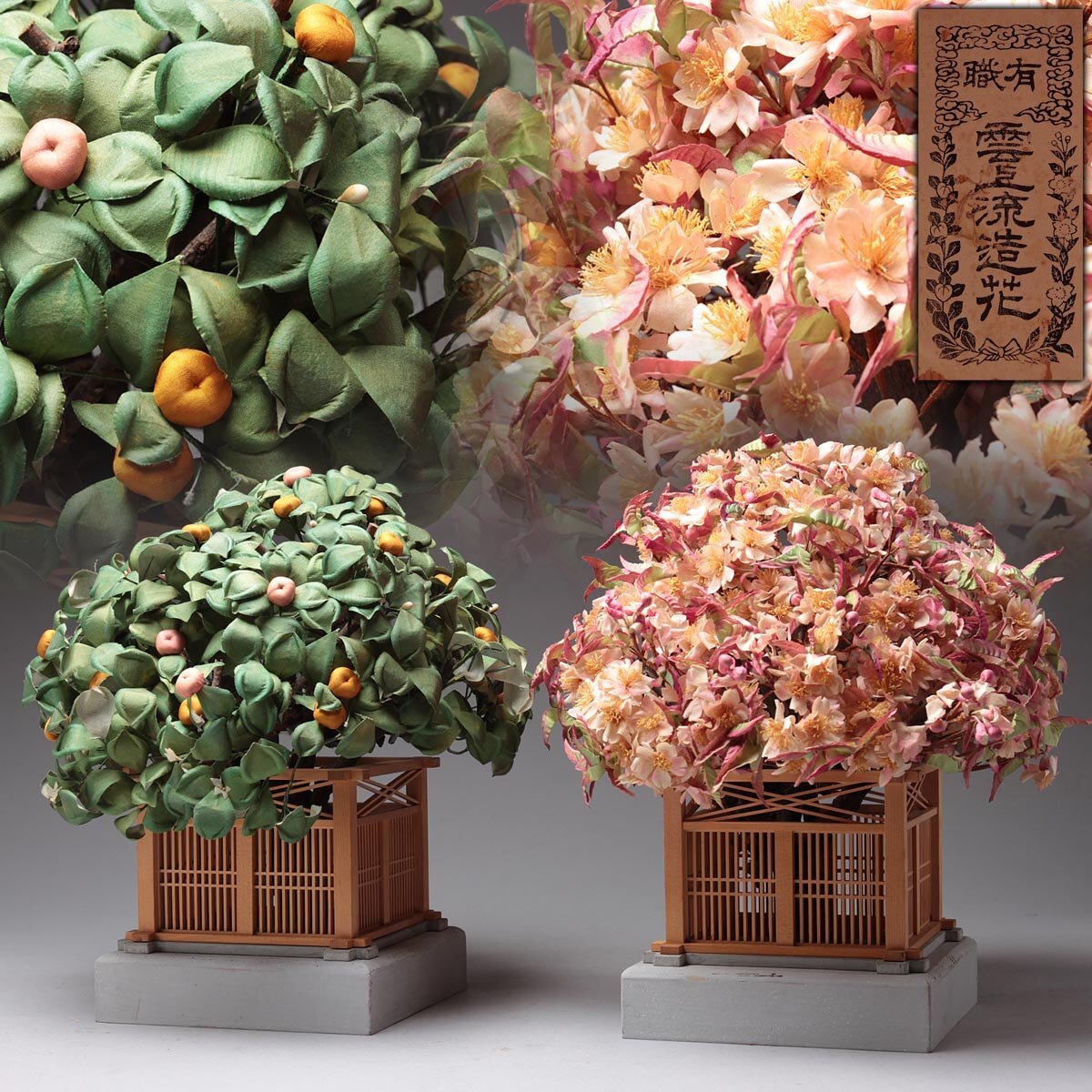 > ZN664 時代【有職 雲上流造花】雛道具 / ひな道具 大振 大型「桜橘」一対 共箱 ひな人形 雛人形 祝具 旧家蔵 ひな祭り 古美術