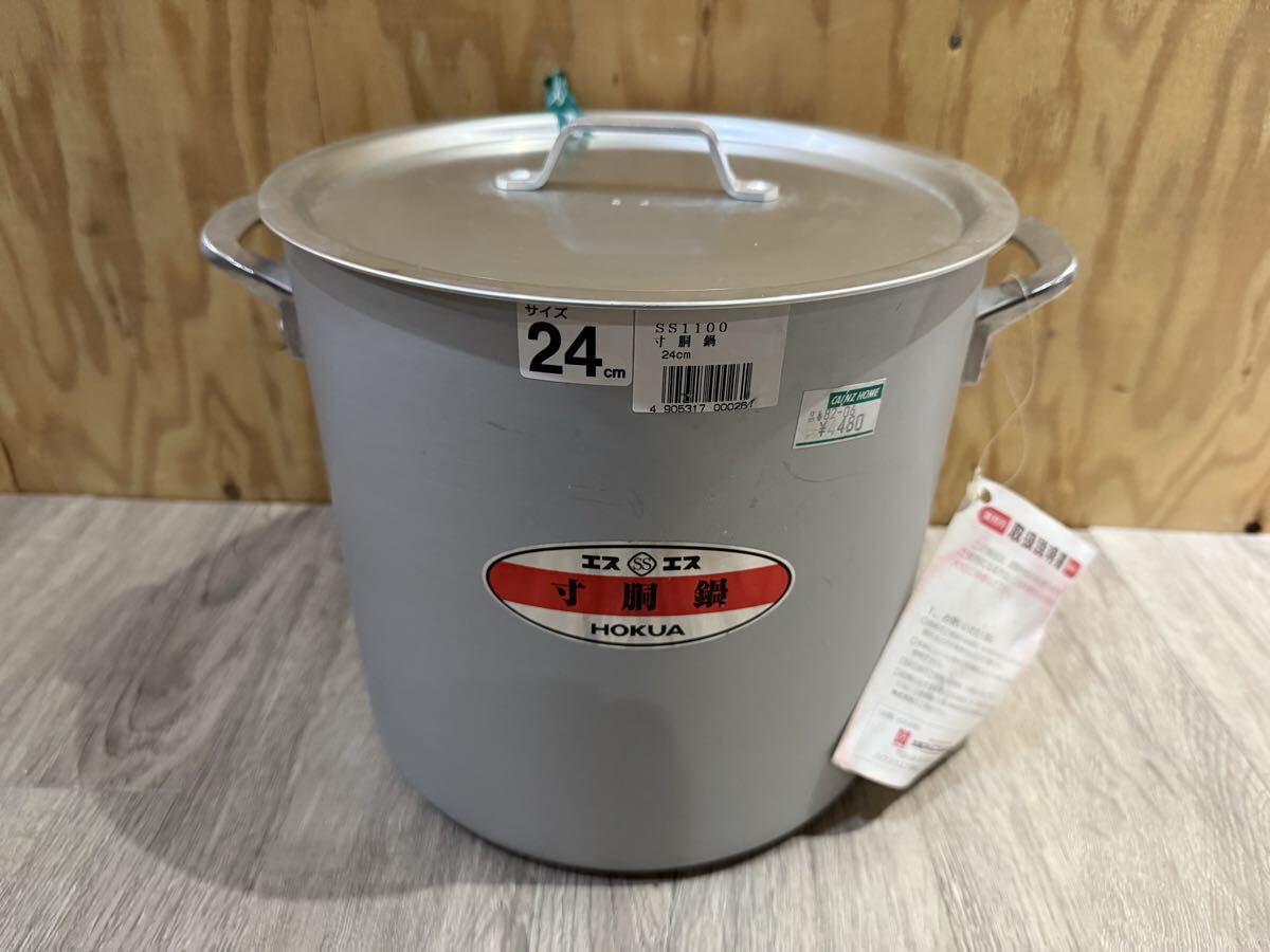 - 未使用 寸胴鍋 アルミ製 24cm アルミニウム 寸胴 HOKUA 調理器具 両手鍋 厨房機器 蓋付 SS1100