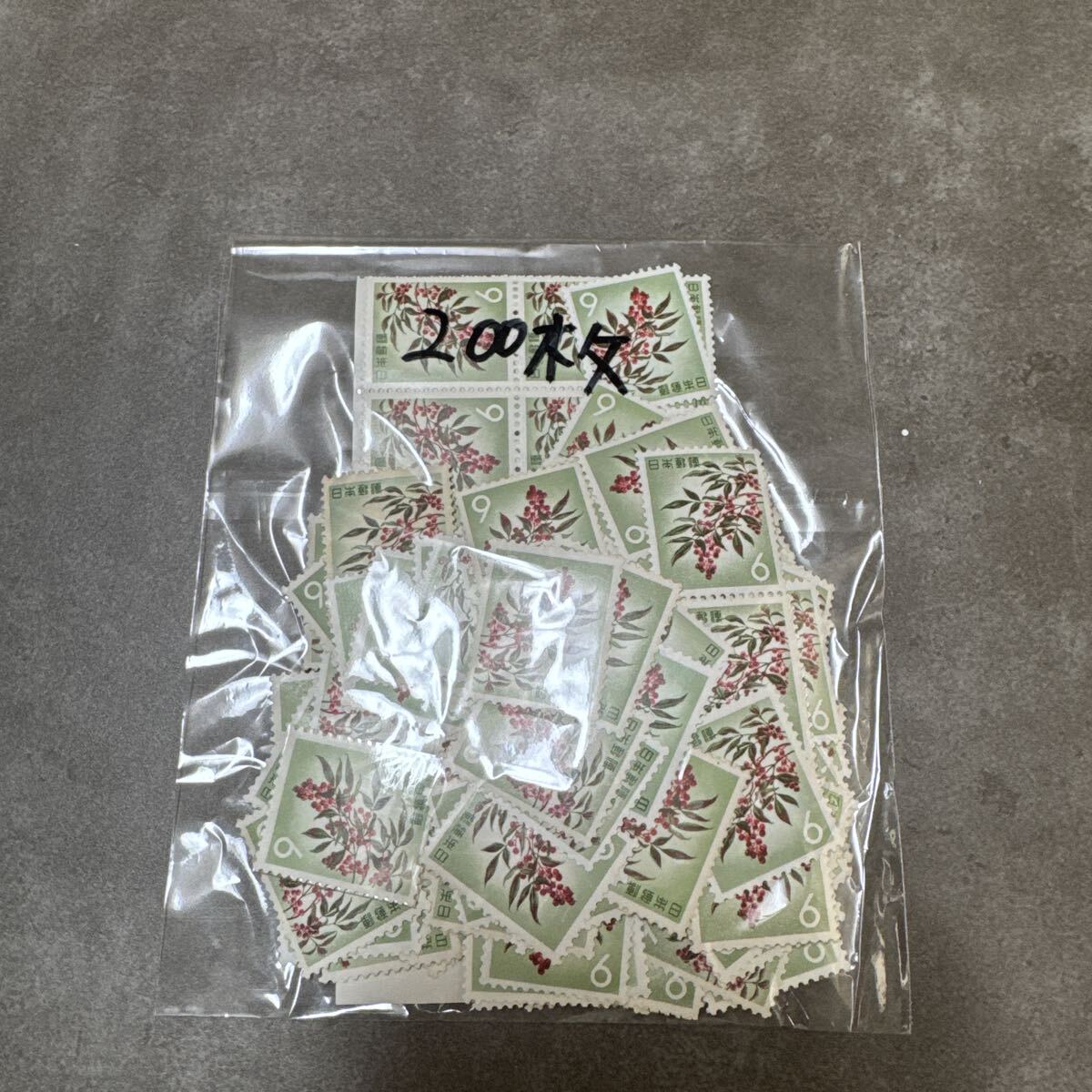> 【29】額面1200円 動植物国宝図案切手 ナンテン バラ ブロック 未使用 200枚まとめ 現状渡し