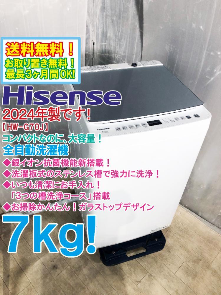 > 送料無料★2024年製★極上超美品 中古★Hisense 7kg コンパクトなのに大容量!銀イオン(Ag+)抗菌機能新搭載!洗濯機【HW-G70J】GEV2