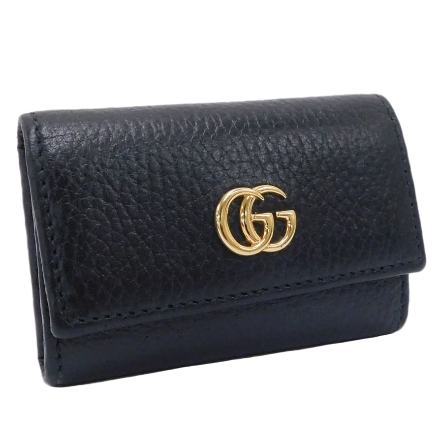 - 1円■美品 グッチ キーケース 456118・0416 ブラック系 レザー GGマーモント GUCCI ■K.Buo.jR-34