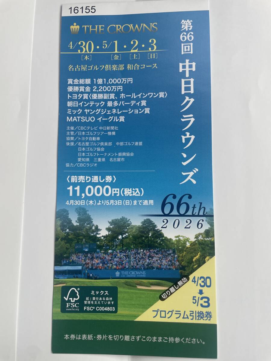 - 第66回中日クラウンズ4日間通し券