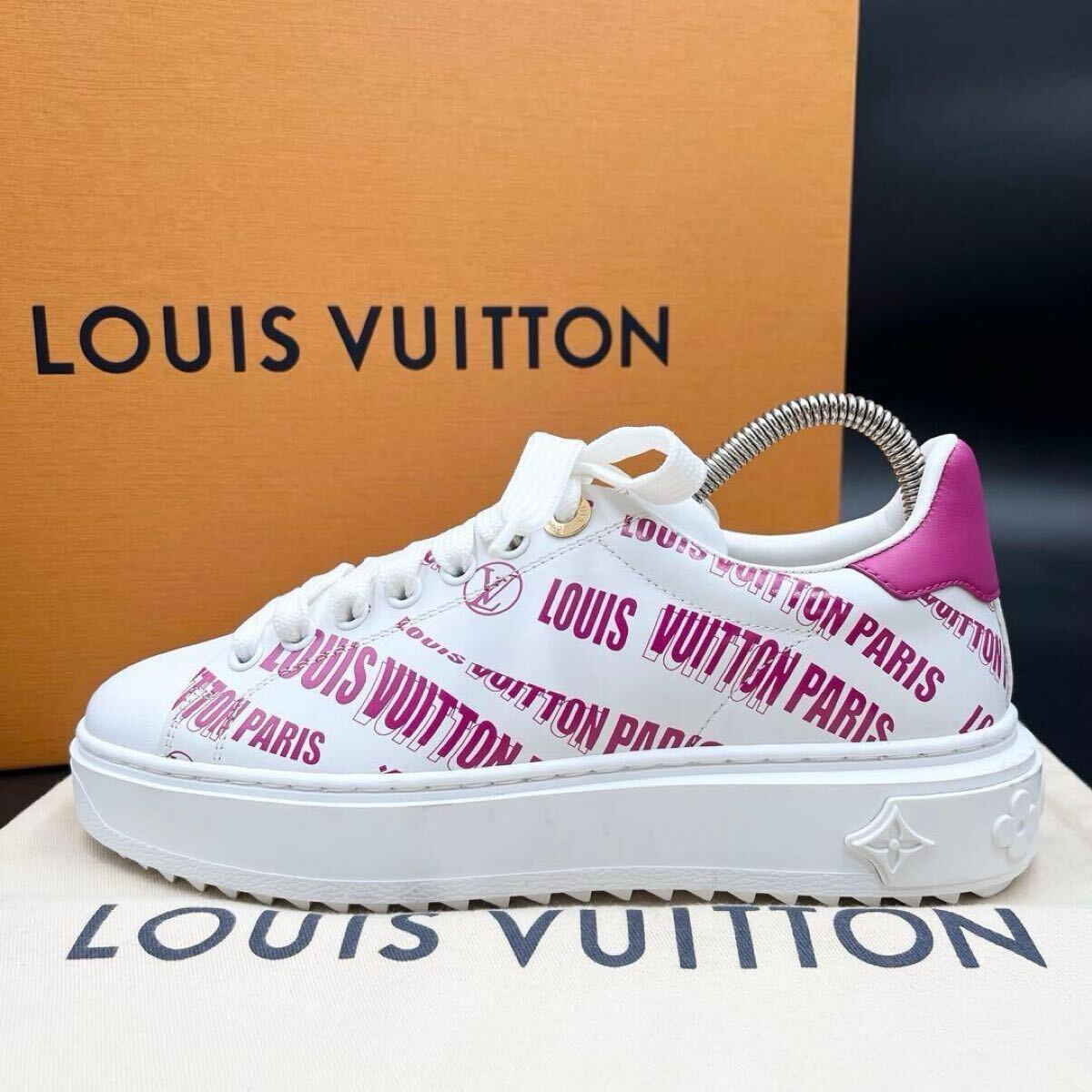 - 1円 【美品】 LOUIS VUITTON ルイヴィトン タイムアウトライン ロゴ柄 レディース スニーカー 靴 シューズ ホワイト 22.5cm相当