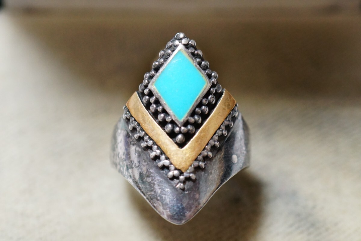 > 548 海外製 ターコイズ リング 指輪 ヴィンテージ アクセサリー アンティーク カラーストーン トルコ石 装飾品