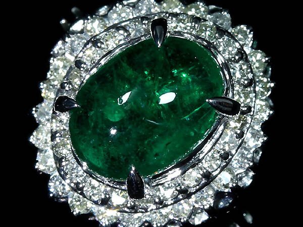 - GK18306T【1円~】新品【RK宝石】≪Emerald≫ 艶めくカボション!! 極上エメラルド 大粒2.07ct 極上ダイヤモンド Pt900 高級リング ダイヤ