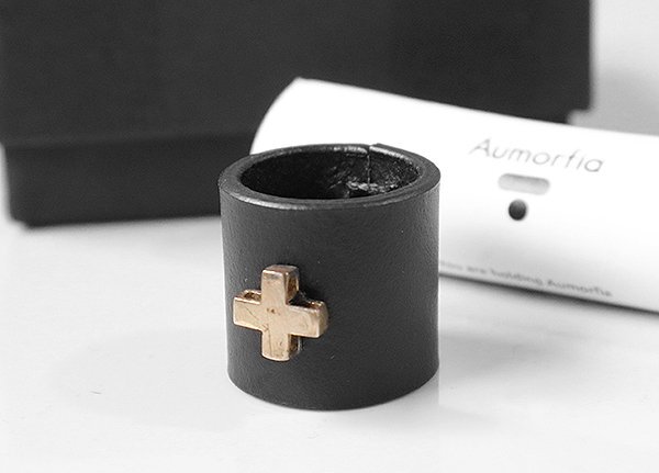 - 未使用* Aumorfia ギリシャ発 ◆ CROSS_XL_ring レザー リング 指輪 925シルバー 黒 ハンドメイド アウモルフィア ◆C3