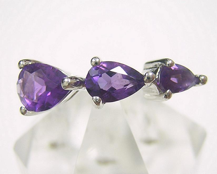 - 『天然アメジスト』 デザインリング 指輪 ペアシェイプ 紫水晶 16号
