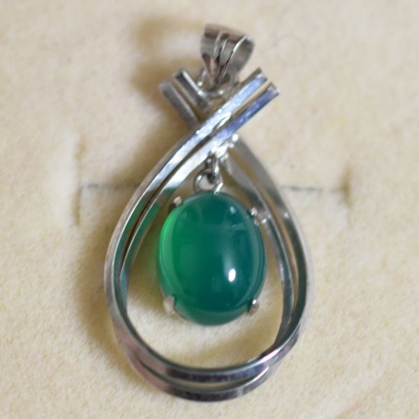 - 日本のヴィンテージ メタル製 翡翠のような美しい瑪瑙のペンダントトップ/チャーム