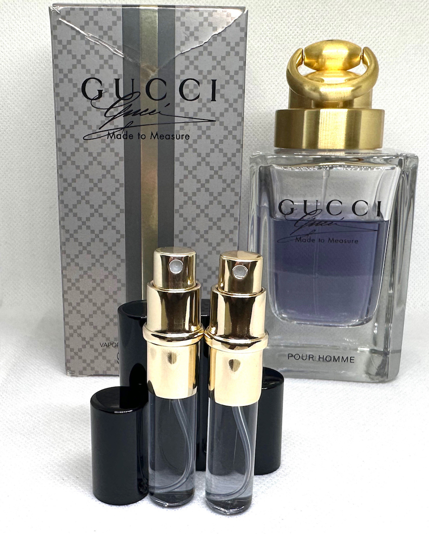 > ★グッチ香水・GUCCI MADE TO MEASURE POUR HOMME 3.5ml入SPRAY 2本(※画像左の小(黒色)スプレー2本のみ出品です)箱無・廃盤・入手困難品