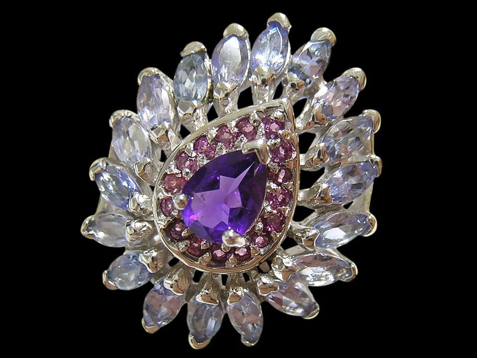 - 『天然アメジスト』 デザインリング 指輪 タンザナイト ロードライトガーネット 17.5号