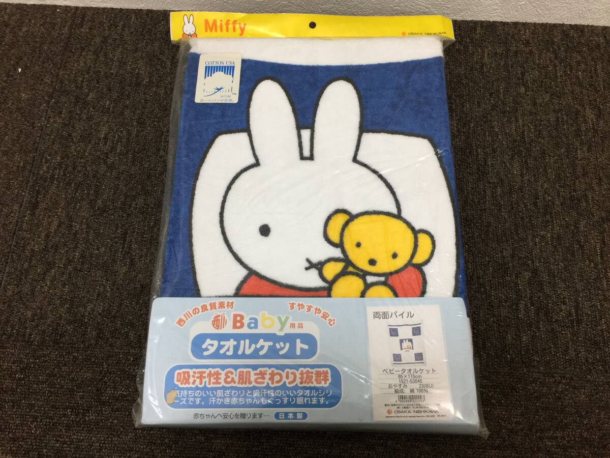 - 【未使用!! 展示品】大阪西川 ミッフィー 両面パイル ベビー タオルケット おやすみ ブルー 85x115cm
