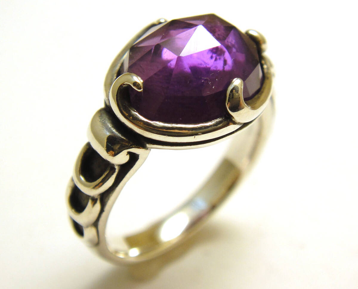 - SP◆8号◆美品・洗浄済 SV刻印 アメジスト 天然石 ヴィンテージリング 銀製