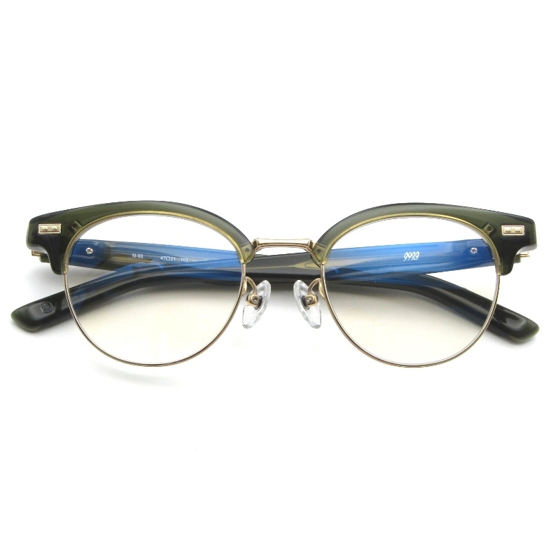 - 999.9 フォーナインズ メガネフレーム M-90 日本製 ボストン ミックス コンビ 7601 グリーンカーキ/ゴールド 65009895