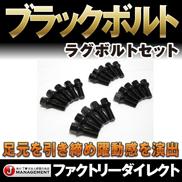 > ブラック 首下28mm M14xP1.5▼ラグボルト 20本セット テーパー トヨタ レクサス ベンツ フォルクスワーゲン アウディ 黒 ハブボルト AC2