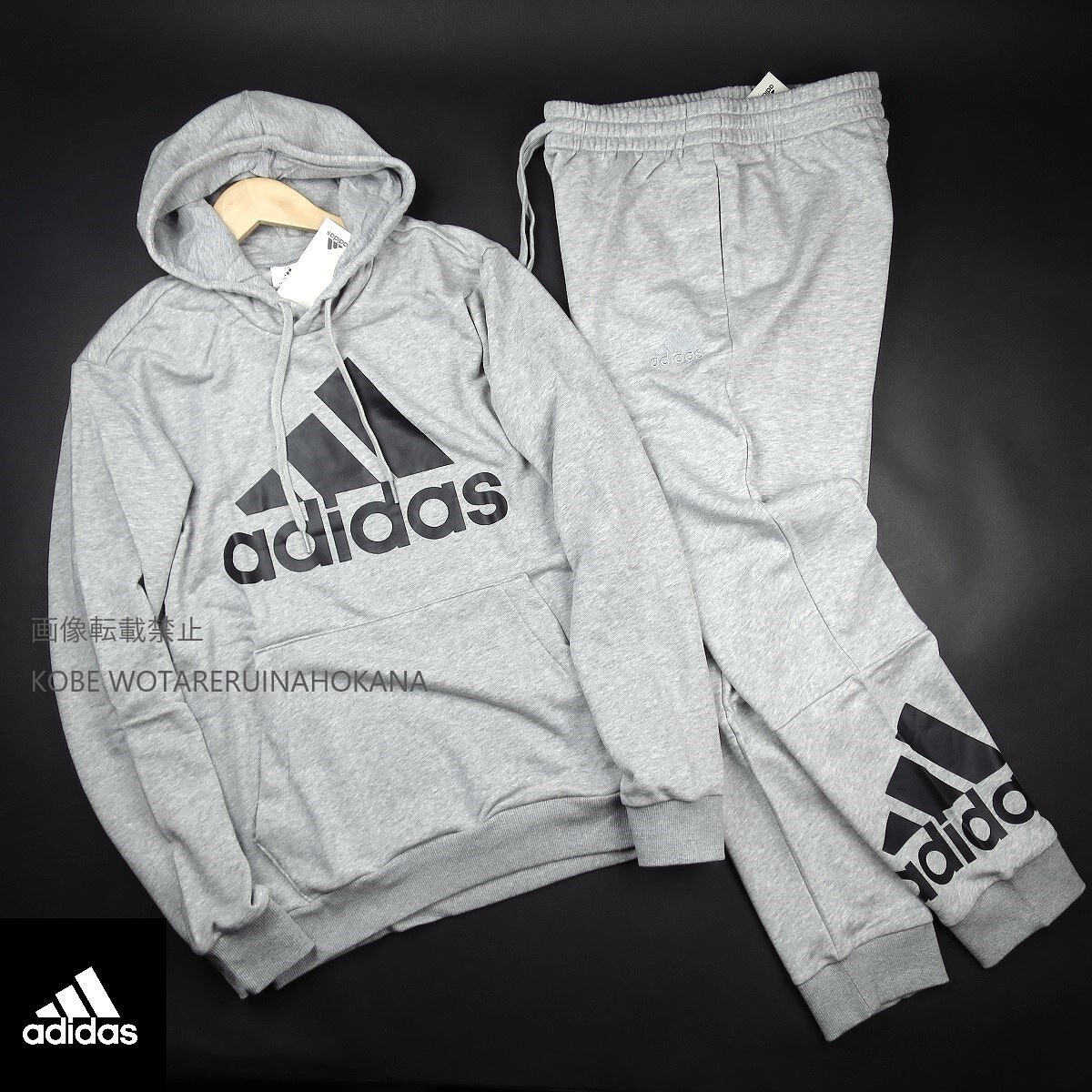- 新品 ★ アディダス adidas ESSENTIALSフレンチテリービッグロゴプルパーカーパンツセット217・970/541・978灰/【L】