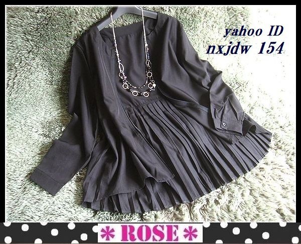 > ◆Rose◇訳あり送料無料・ゆったりワンサイズ ・揺れるバックプリーツ♪春のブラウスジャケット/ブラック