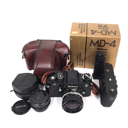 - 1円 Nikon F3 Ai NIKKOR 28mm F2.8 一眼レフフィルムカメラ レンズ ジャンク MD-4 モータードライブ 付属 L80-1