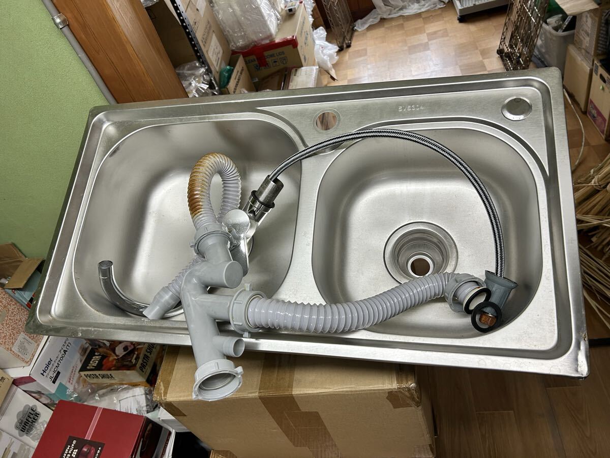 - 【引取り限定】DIY流し素材 ステンレス 2槽シンク