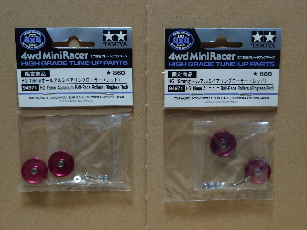 - 送料無料 タミヤ ミニ四駆 94971 HG 19㎜オールアルミベアリングローラー レッド 初期 2袋セット