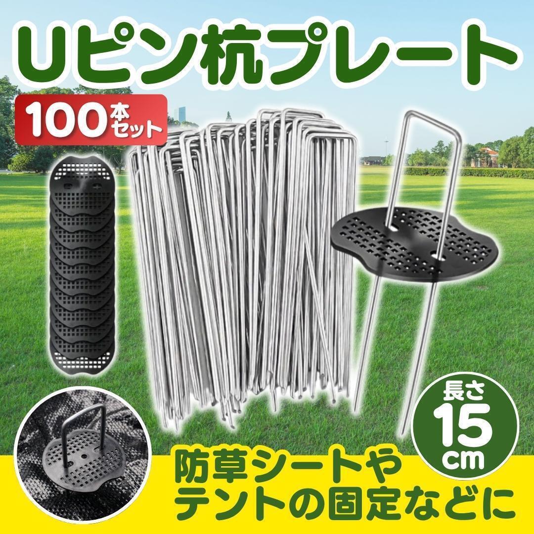 - Uピン杭 黒丸付き 15cm 100本セット 防草シート 人工芝 除草シート 園芸 マット テント 固定ピン 農業 ガーデニング ペグ 家庭菜園 U字型