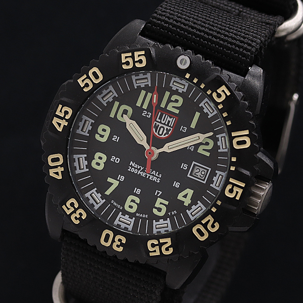 > 1円 稼働 良品 箱/保付 ルミノックス ネイビーシールズ 3050/3950 QZ ブラック文字盤 メンズ腕時計 7615100 3JWY KMT
