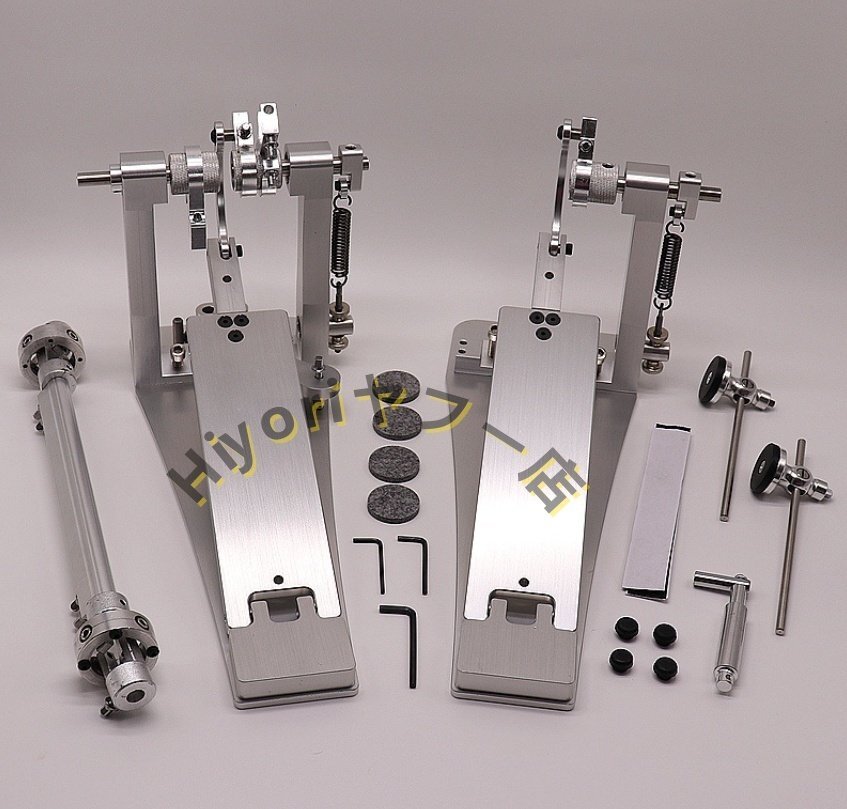 - 人気推薦☆シルバー ドラムツインペダル ジャズドラム用ダブルフットペダル バスドラム練習用 ペダルアクセサリー