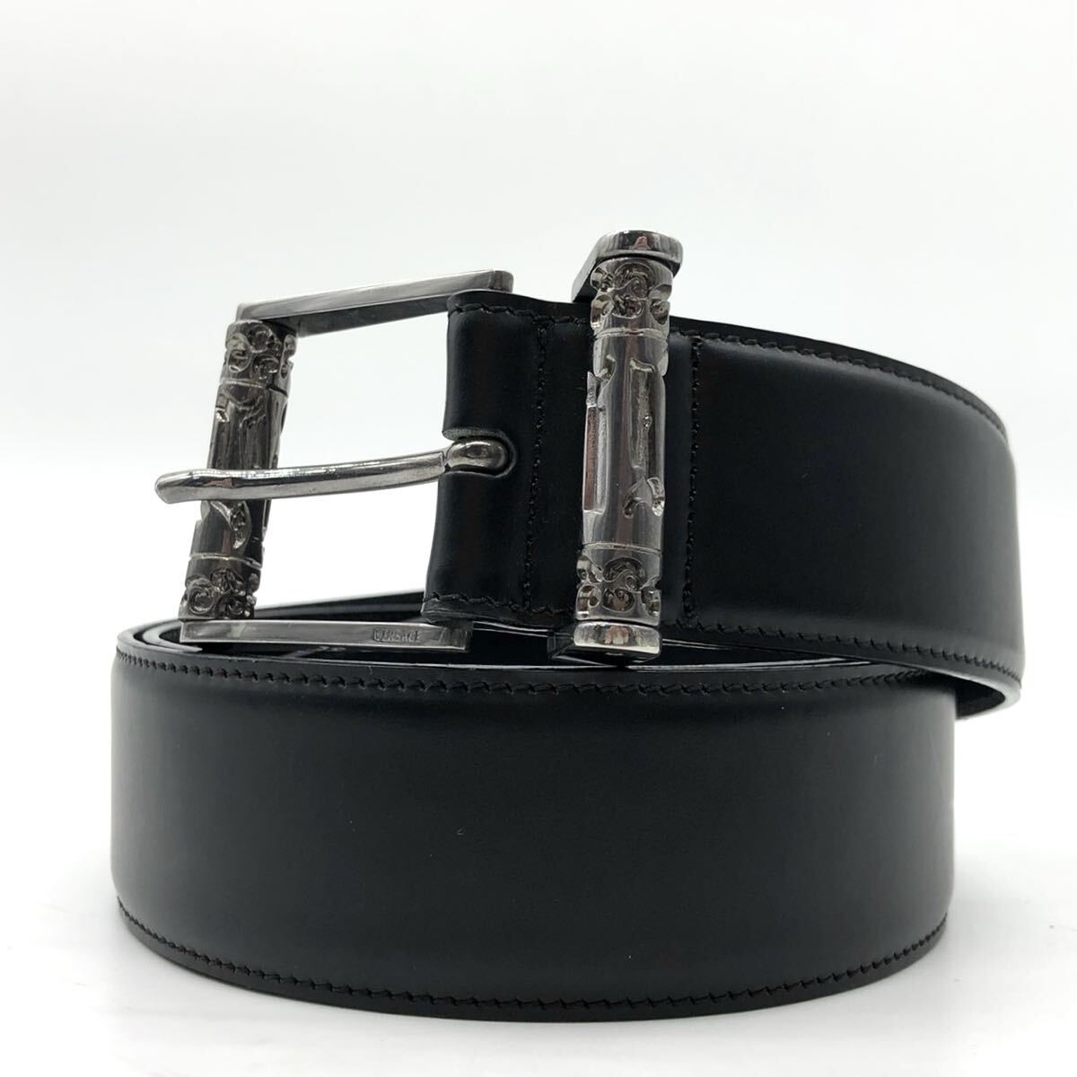 > 5853-4【極希少】GIANNI VERSACE ジャンニヴェルサーチ ベルト ビジネス セレモニー フォーマル バックル シルバー金具 レザー 本革 黒