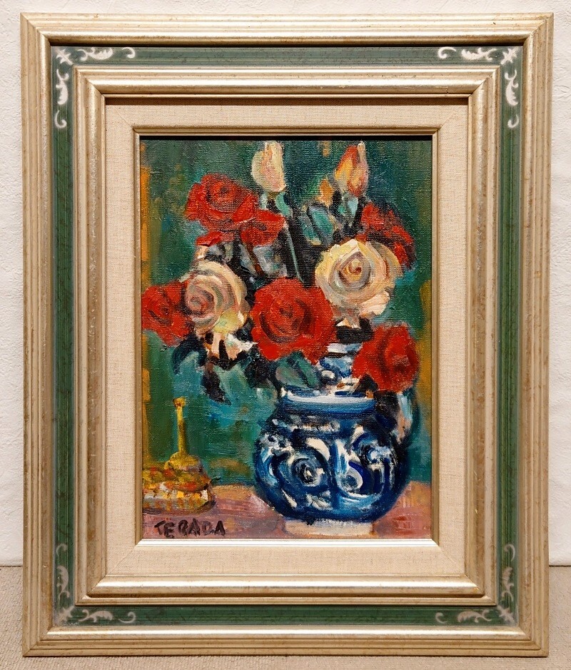 - 真作保証 寺田竹雄「バラ」油彩 4号 日本芸術院会員 二紀会理事長 従軍画家 勲三等瑞宝章 師:藤島武二