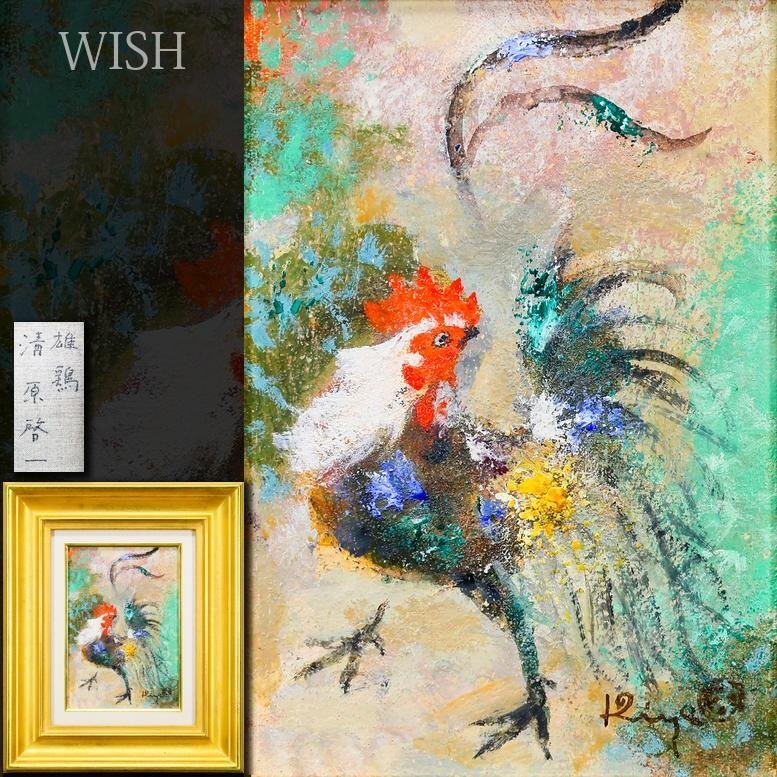 > 【真作】【WISH】清原啓一「雄鶏」油彩 SM ◆鮮やかに描かれた躍動の鶏 〇日本芸術院会員 日展顧問 鶏の画家 物故巨匠 #26042093