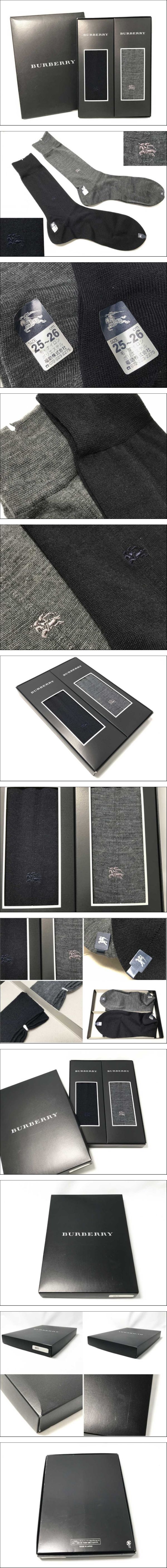 > ◆未使用!BURBERRY バーバリー ソックス 2足セット 靴下 ビジネスソックス 紳士用 25~26cm グレー ネイビー 福助 メンズ 箱入り