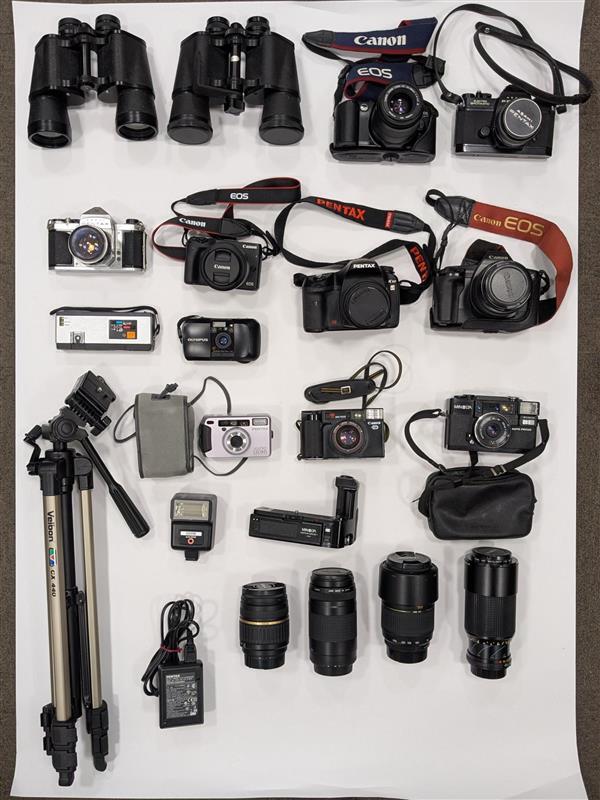 - canon OLYMPUS PENTAX MINOLTA 他 フィルムカメラ 双眼鏡 三脚 おまとめ品